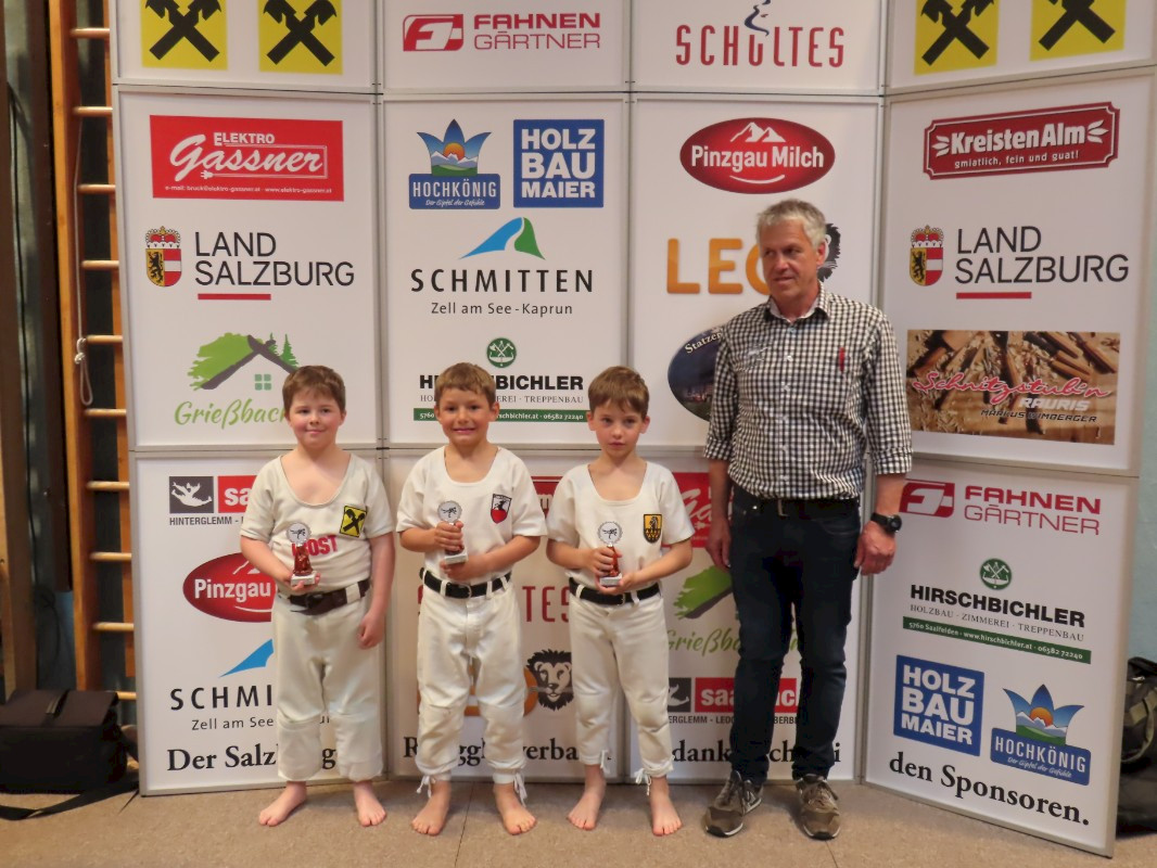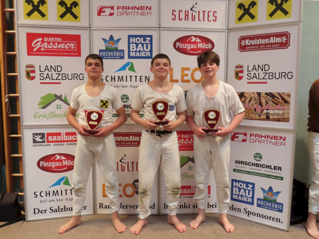 Dritte Preise holen sich Vincenc Maier aus Bramberg in der Klasse bis 16 Jahre, Almin Klicic aus Taxenbach in der Klasse 4, der mit dieser Platzierung übrigens den Aufstieg in die Klasse 3 geschafft hat, Jonas Voglreiter aus Piesendorf in der Klasse 3, Christian Pirchner aus Taxenbach in der Klasse 2 und Christopher Kendler aus Saalbach in der Klasse 1.