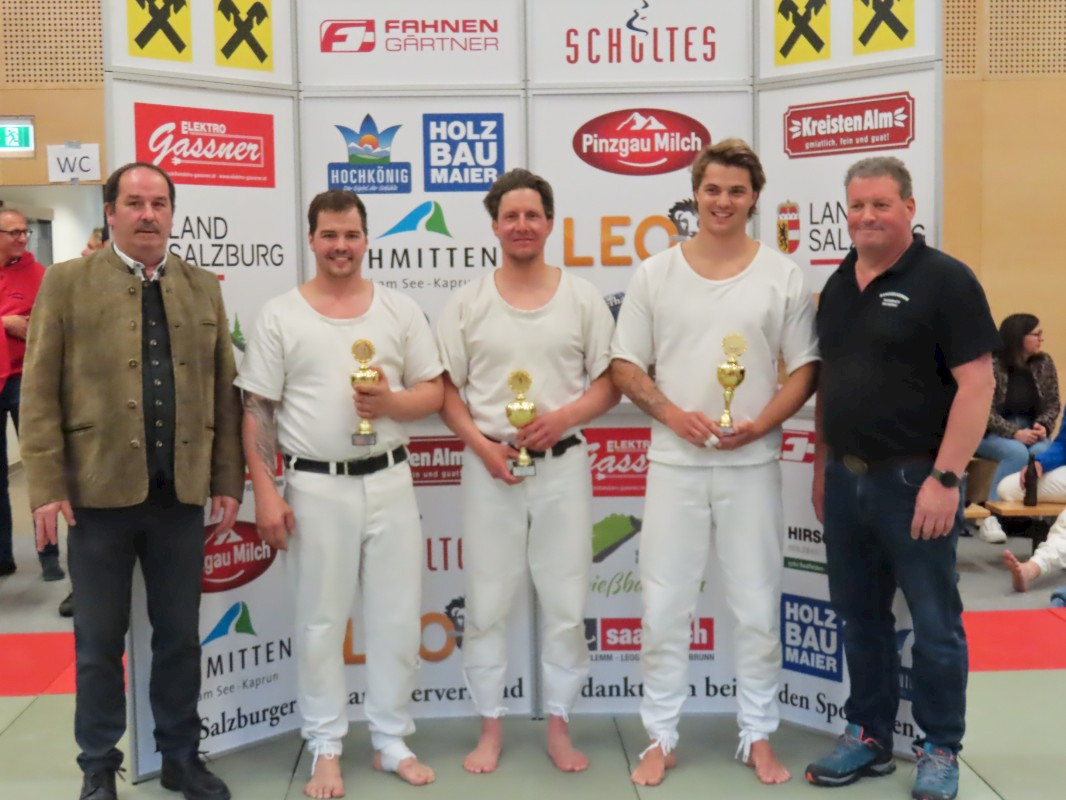 Der Rangglerverein Saalbach holt den Mannschafts-Landesmeistertitel ins Glemmtal. Knapp dahinter liegt der Vorjahressieger Piesendorf, gefolgt vom Rangglerverein Bramberg.